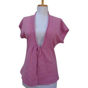 NWOT- CYNTHIA ROWLEY Pink 100% Cashmere Short Sleeve Tie-Front Cardigan -Size M
