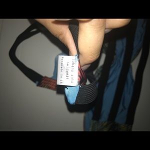 A beautiful tribal print lined in turquoise glossy lining! This pattern is truly one of a kind and no two are exactly alike...tops can vary to include more orange/reds or more blue/green. Lightly padded.