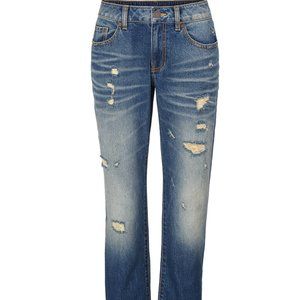 The 100% Boyfriend jean you know and love is back in an all-new craftsman wash. The fading and sanding down the thigh add dimension to these distressed jeans. Make the other denim in your closet jealous with these relaxed-fitting jeans.