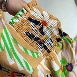 NWOT Cabi Island Mod Floral Style #6296 Blouse Tangerine Green Black White