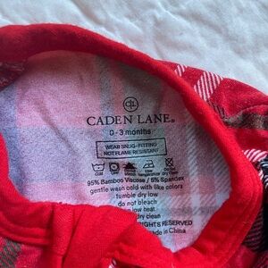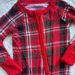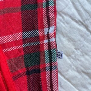 Charming red and white plaid onesie. Bamboo fabric with a snug fit, fold over hands and two-way zipper. Perfect for Fall vibes and Christmas.