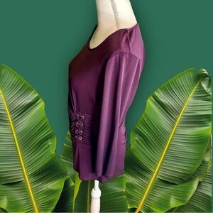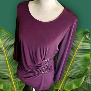 NWOT Calvin Klein ‘3/4 Sleeve Ruched Lace Up Detail Pullover Blouse’ Purple Sz S
