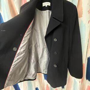 NWOT Calvin Klein Black Double Breasted Fully Lined Wool Cashmere Peacoat Size 14