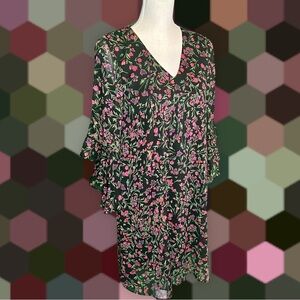 NWOT Calvin Klein Black / Pink Floral Bell Sleeve Chiffon Overlay Shift Dress 4