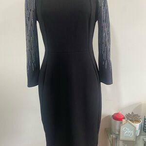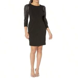 NWOT .. Calvin Klein Black Sheath Dress with Crew Neck and 3/4 Sleeves