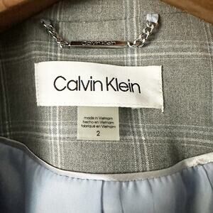 NWOT Calvin Klein Gray & Light Blue Windowpane Suiting Overcoat women’s size 2