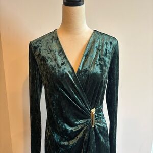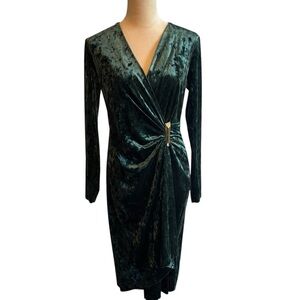 NWOT Calvin Klein Green Crushed Velvet Faux Wrap Dress 10 Cocktail Evening