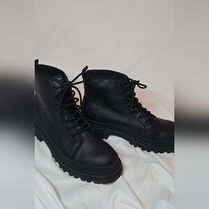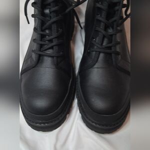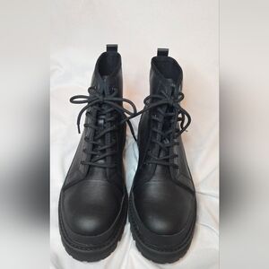 NWOT Calvin Klein Mens Black 1" Platform Pull Tan Combat Bsboot Round Toe B9