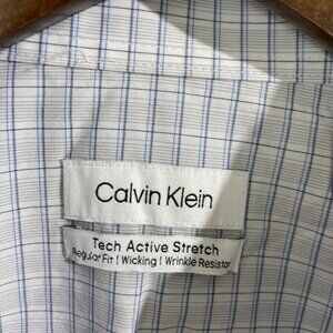 NWOT Calvin Klein Men's L Tech Active Stretch Dress Shirt Button Down Plaid