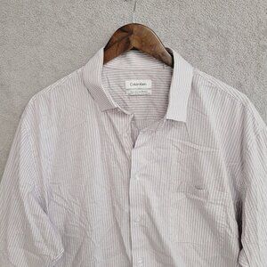 NWOT Calvin Klein Mens XL Tech Active Stretch Button-Down Shirt White & Purple