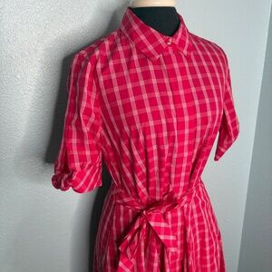 NWOT Calvin Klein Red White Plaid Gingham Cotton Dress
