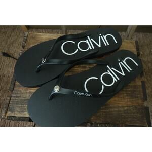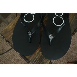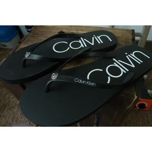 Step into summer with these stylish and comfortable Calvin Klein black thong flip flops! These are brand new without tags, still have bottom sticker and have never been worn. Perfect for adding a touch of casual elegance to any outfit.
