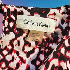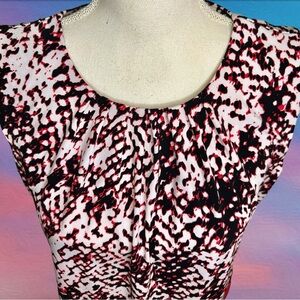 NWOT Calvin Klein ‘Sleeveless Pleat Neck Abstract Print Knit Top’ in Red Multi L