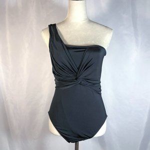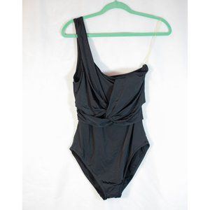 NWOT Calvin Klein Twist-Front One Shoulder Swimsuit Black Size14
