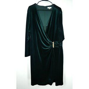 NWOT Calvin Klein Velvet Long Sleeve Belted Dress Green 24W