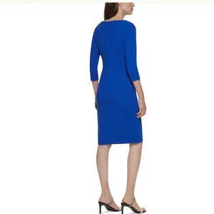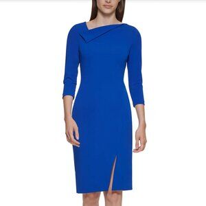 NWOT Calvin Klein Women's Foldover-Neck Front-Slit Sheath Dress Blue