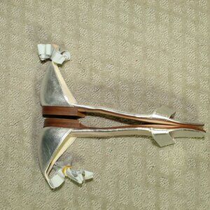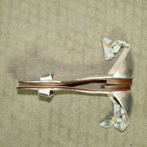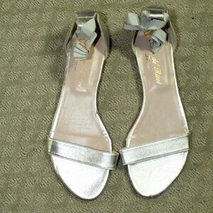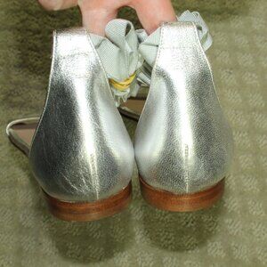 NWOT Canto de Ricci Women's 8 / 39 Silver Ankle Wrap Flat Sandals