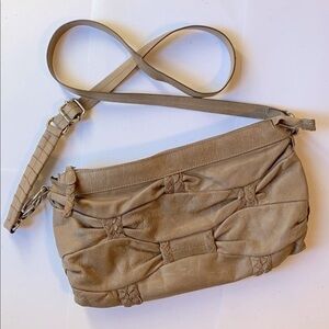 -Brand new, super soft, beautiful crossbody bag with woven ribs and ruffles. Elegant, chic, gorgeous match with many different styles.