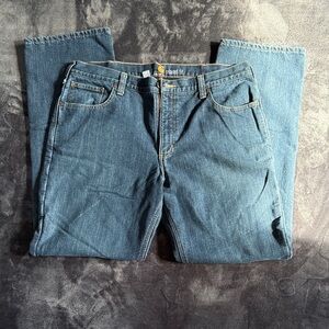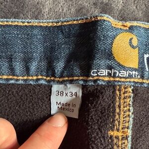 Stay warm and durable in these NWOT Carhartt fleece-lined relaxed fit jeans in men’s size 38x34. Built tough for work and designed for comfort, they feature a soft fleece lining to keep you warm in colder weather while maintaining Carhartt’s rugged durability. Classic blue wash with a relaxed fit through the seat and thigh makes them perfect for outdoor work or casual wear.