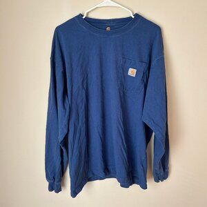 NWOT Carhartt Loose Fit Heavyweight Long Sleeve Pocket T-Shirt Navy Blue Large