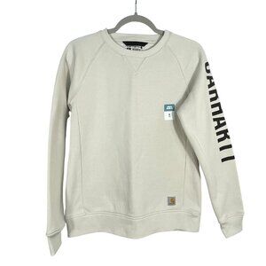 NWOT Carhartt White Relaxed Fit Crewneck Graphic Block Logo Sweatshirt Womens S