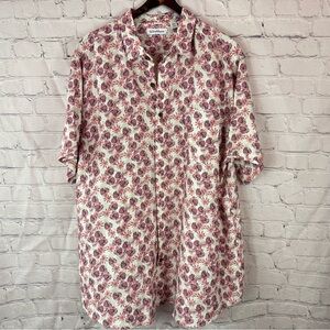 NWOT Caribbean pink palm print tropical hawaiian camp Button Down Shirt sz 2XT