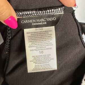 NWOT Carmen Marc Valvo One-Shoulder Mesh Cutout Swimsuit Black/White – Size 10