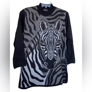 NWOT- Carole Little Vintage wool blend zebra print sweater. Size XL