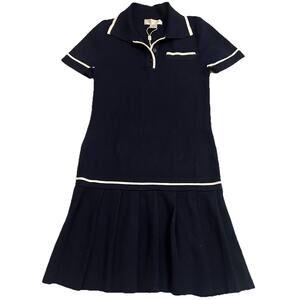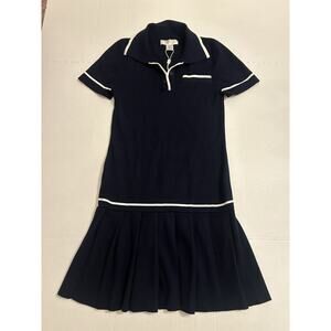 NWOT Caroline Constas Navy Mini Court Dress Size Small Ribbed Pleated White Trim
