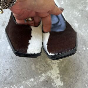 Check out the pictures. These are absolutely beautiful cat hair, skin heels that have never been worn. In storage for a long time so the heel taps needed to be changed, which I have done. New without tags. Heel height is 4.5 inches platform is .25 inches.