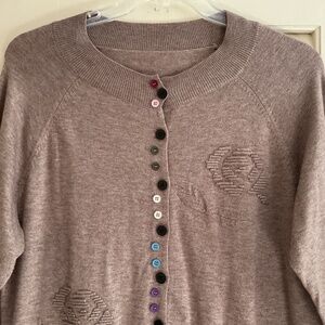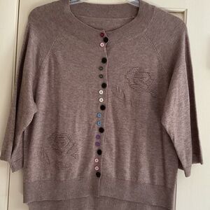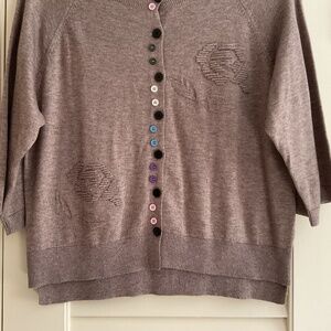 NWOT Cashmere Beige Embroidered Bottom Down 3/4 Sleeves Woman Sweater Size XL