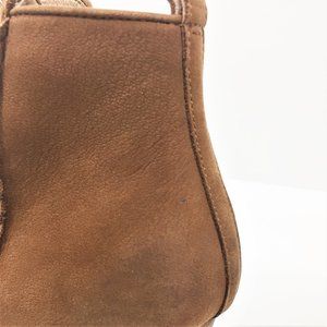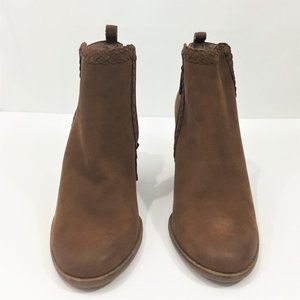 NWOT Caslon Whitney cognac nubuck wedge bootie. They feature a round toe, braided trim, side zip closure and a stacked wedge heel. Leather upper and liner, rubber soles. Water Resistant. (Minor imperfection. See Pic 8).