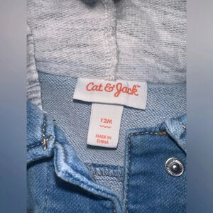 NWOT Cat & Jack Denim Cat Hood Denim Jacket. Size 12m