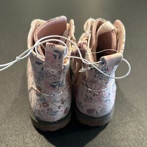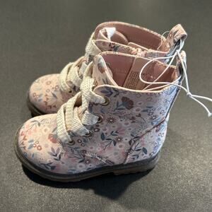 NWOT Cat & Jack floral boots in toddler size 6C (fit closer to 5C–6C). Off-white/cream base with a charming floral pattern that pairs perfectly with any outfit. Features real laces for style and side zippers for easy on/off. Never worn — still connected by original elastic tie, just missing tags.