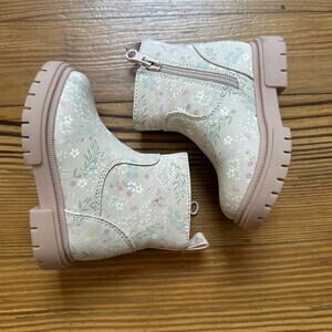 NWOT Cat & Jack light pink floral zipper side booties SIZE 5