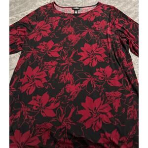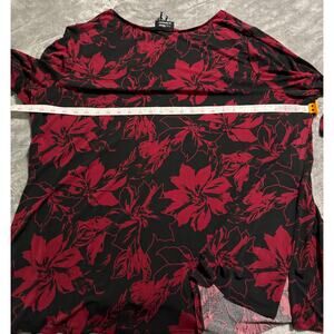 NWOT Catherines Women's Plus Size Anywear Tunic 3X 26/28W Red Black Floral Careerwear Office Church Formal Stretchy Everyday Crew Neck Holiday Business