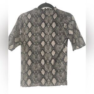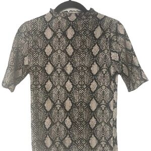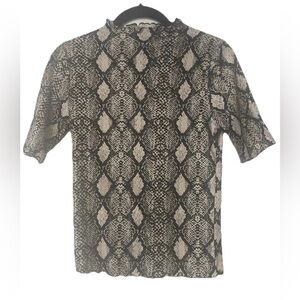 NWOT Caution to the Wind Animal Print black tan short sleeved top size Small