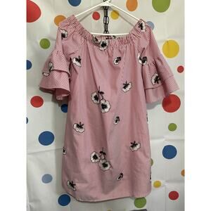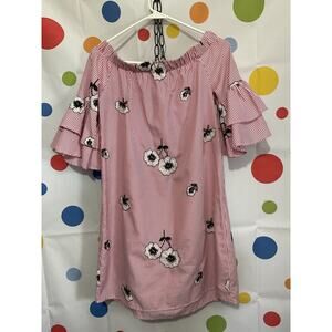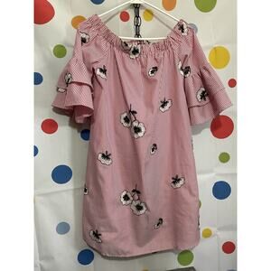 NWOT Ces Femme Size S Off The Shoulder Dress Pinstriped Floral