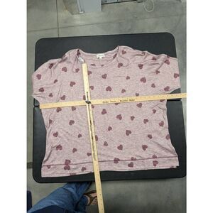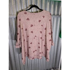 NWOT Cha Cha Vente Top Pink with Burgundy Hearts 3/4 Sleeves Round Neck Women's