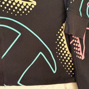 NWOT Champion Classic Fleece Hoodie – Black with Multicolor Graphic Print Size M