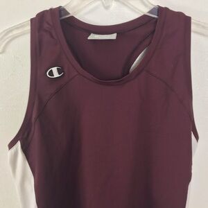New without tags, Champion Double Dry racer back tank top, size medium, burgundy/white, 92 nylon/spandex