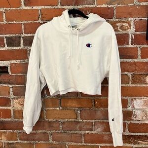 NWOT Champion Reverse Weave Cropped Cut-Off Hoodie in White, size M