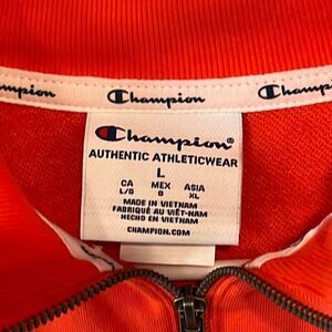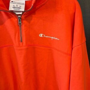 This sweatshirt is made by Champion. It’s an orange 1/4 zip. Size large and NWOT. Smoke and pet free home.