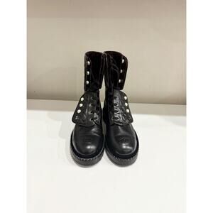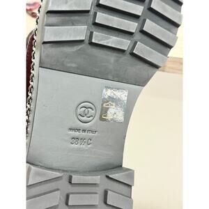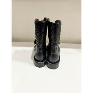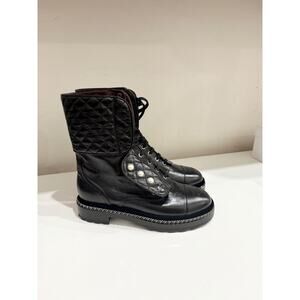 NWOT Chanel Quilted Patent Leather CC Pearl Mid-Calf Combat Boots Black EU 38.5