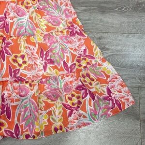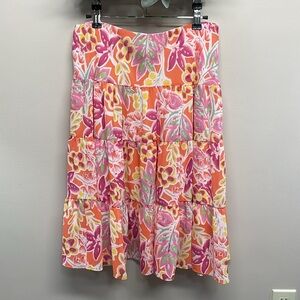 NWOT Chaps Coral Pink Yellow Floral Lined Tiered Chiffon Midi Skirt MP