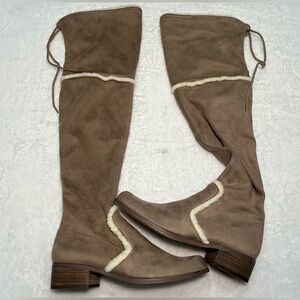 NWOT Charles David Sz7.5 brown/beige pullon over the knee boots by Anthropologie