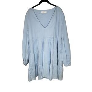 NWOT Charlie Holiday Agatha V Neck Mini Dress 8 Long Sleeve Pockets Tiered Blue