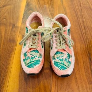NWOT Charlotte Olympia Velvet Work It! Flamingo Sneakers in Pink and Green