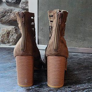 NWOT Charlotte Russe Brown Caged Peep Toe Block Heels Size 8. Soft faux micro suede. Never worn and no box. Brand new.