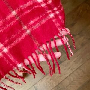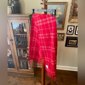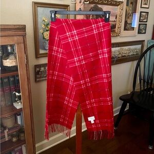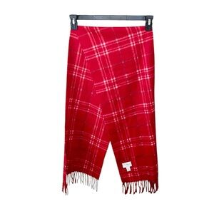 NWOT Charter Club 100% cashmere plaid scarf with fringe 60x12 quiet luxury red